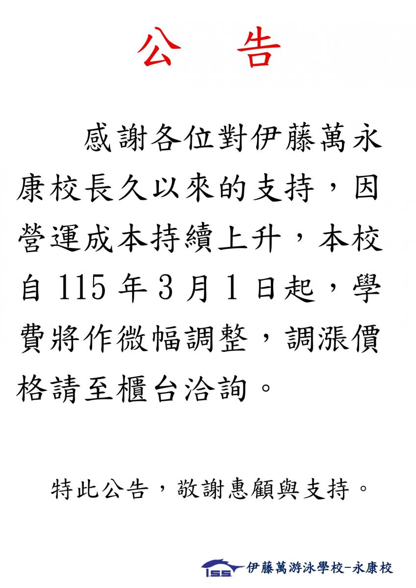 感謝各位家長長期以來的支持,因人事營運成本上漲,泳校自115年3月1日